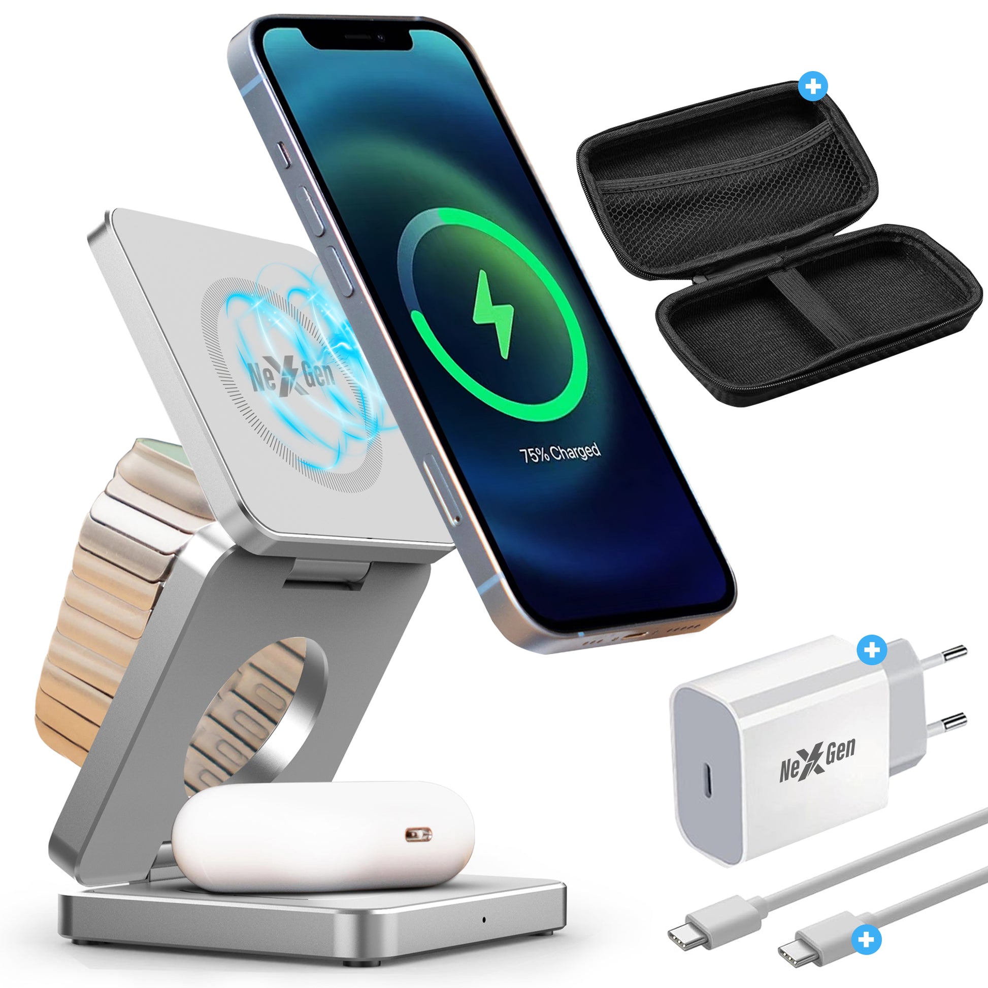 NexGen 3 in 1 Draadloze Oplader Bundel Zilver