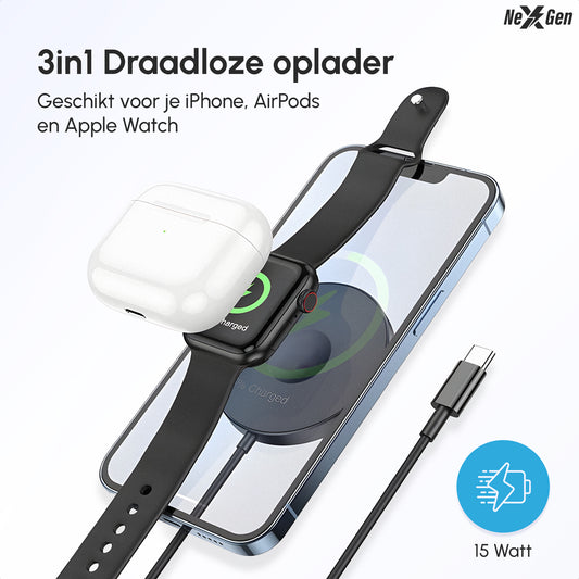AanbiedingNexGen 3 in 1 Draadloze Oplader Bundel Grijs